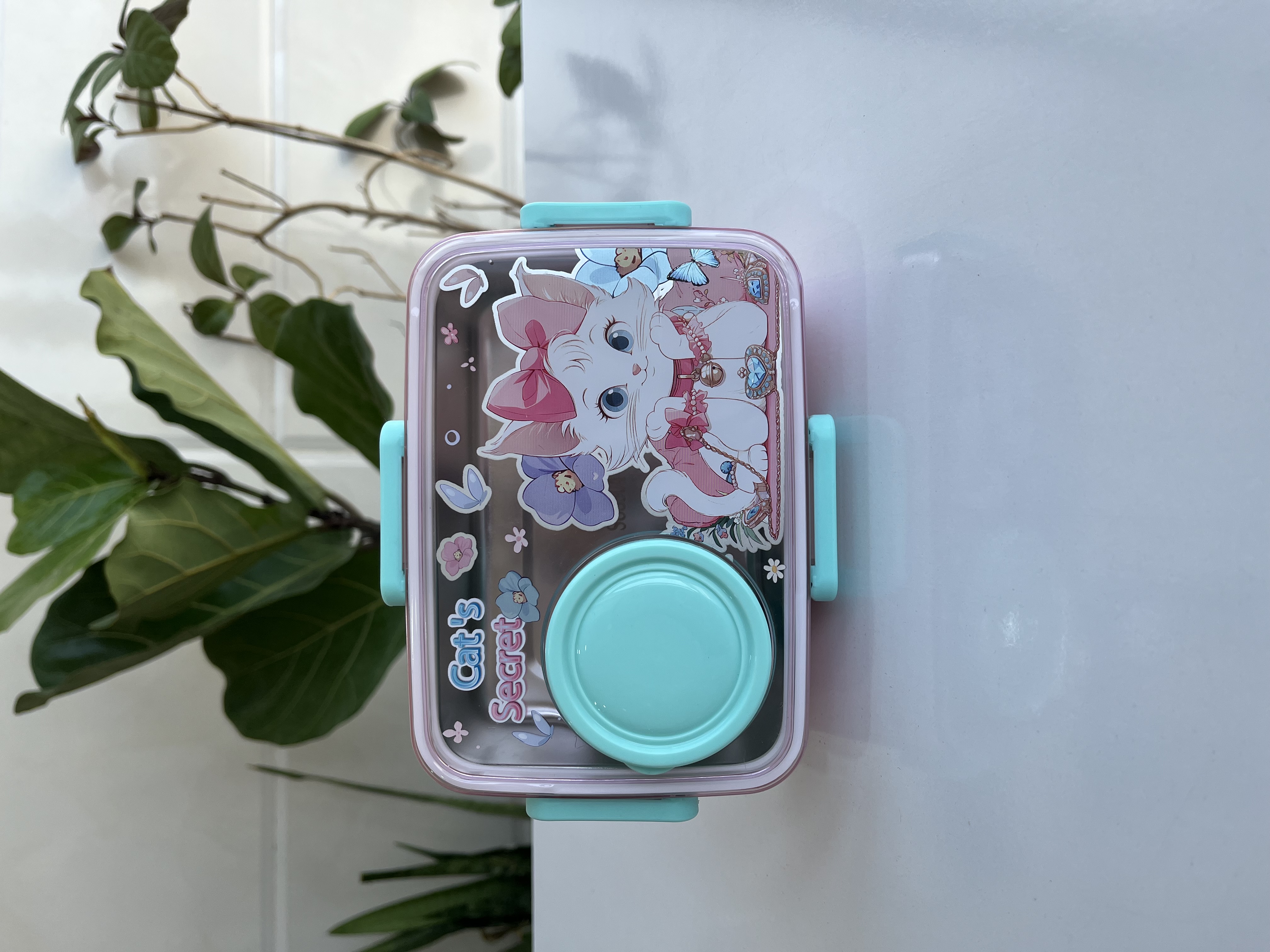 لانچ باکس دو جداره . دیواره بیرونی پلاستیک ، داخلی استیل ضد زنگ. قابل جابجایی و شستشو. ۴ قفله.طرح کیتی. کیفیت عالی. جعبه کادویی