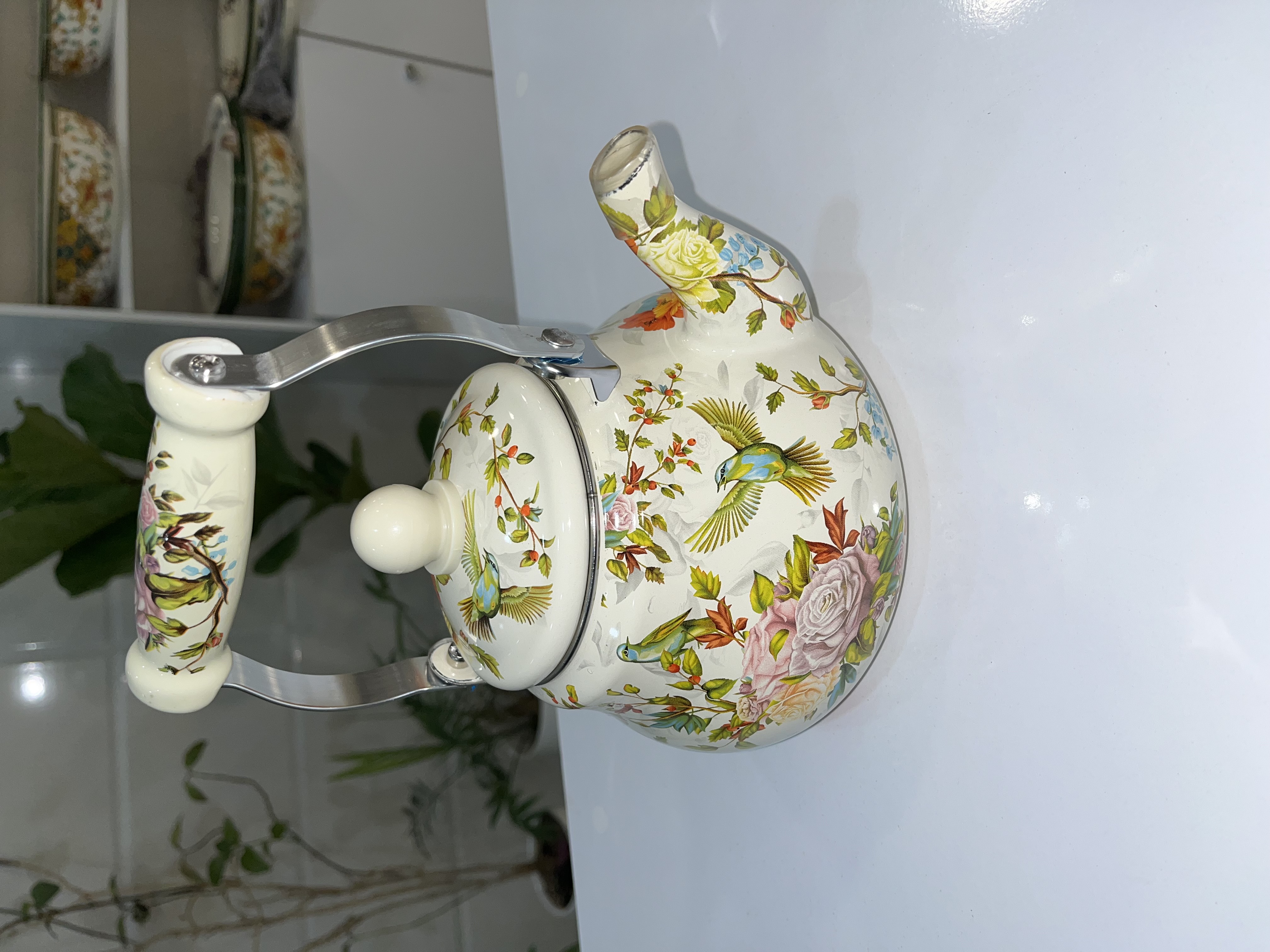 این کتری دارای روکش لعابی و دسته ی سرامیک میباشد. طرح زیبای گل و مرغ یکی از طرح های بسیار پرطرفدار است. قابل استفاده روی انواع اجاق. مناسب دم کردن چای، جوشاندن شیر و ..